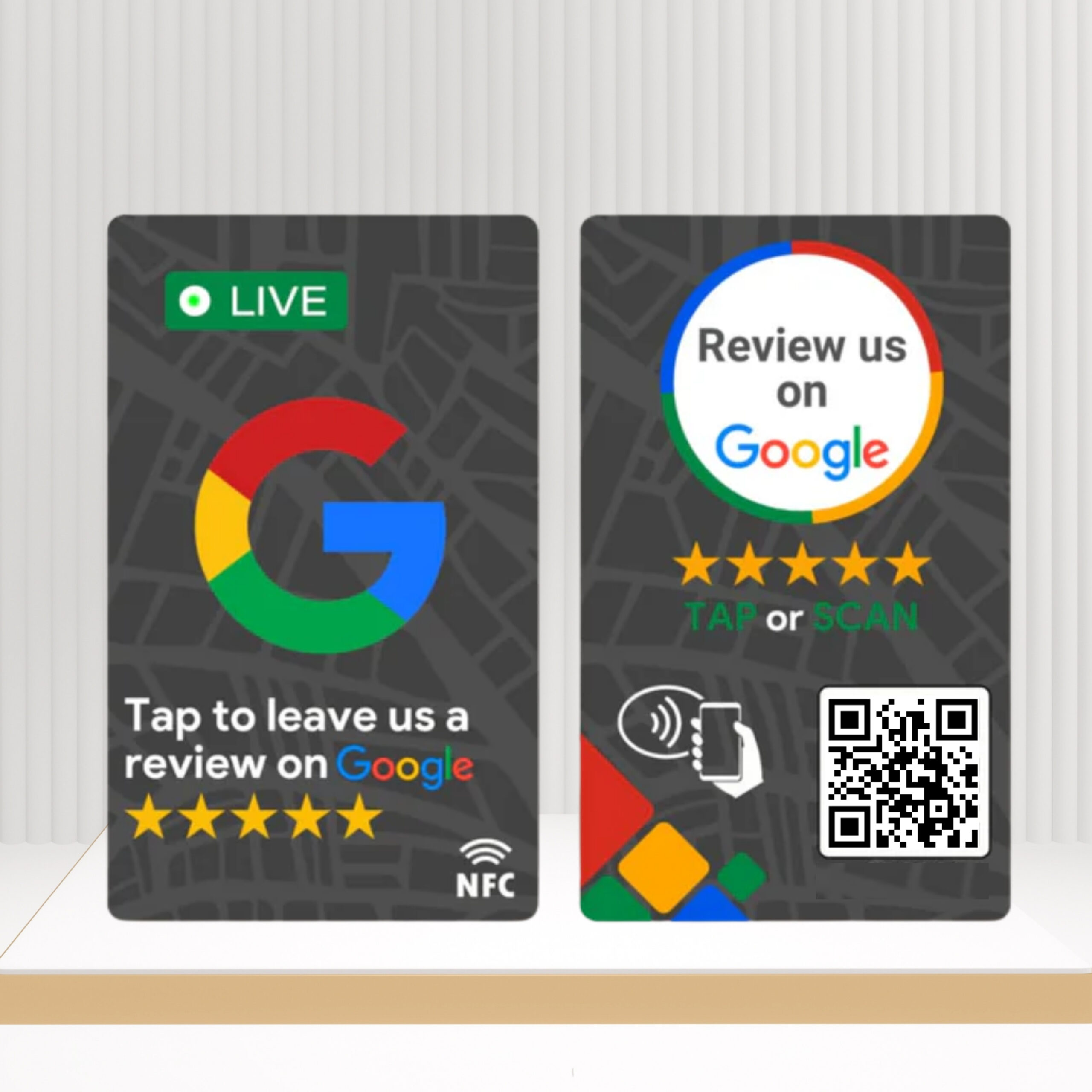 Review Card With Led Light ( No Battery Required), Lights up to indicate NFC tap, Increase your businesses reviews with ease using our Review NFC Card. This premium quality PVC card has Near Field Communication (NFC) and large QR code to easily leave reviews with a tap or scan. Stay on top of more reviews, improve your online reputation and see your business flourish